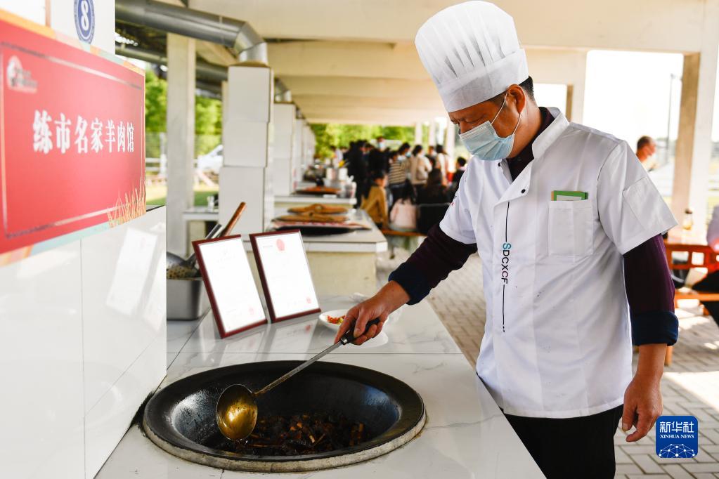 10月23日,厨师在练市镇荃步村现场烹饪柴火羊肉。