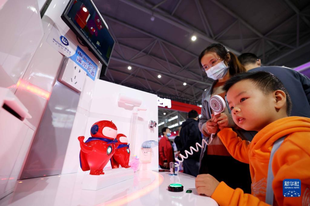 10月23日,在第十五届合肥国际文化博览会现场,小朋友在体验电气火灾演示装置。