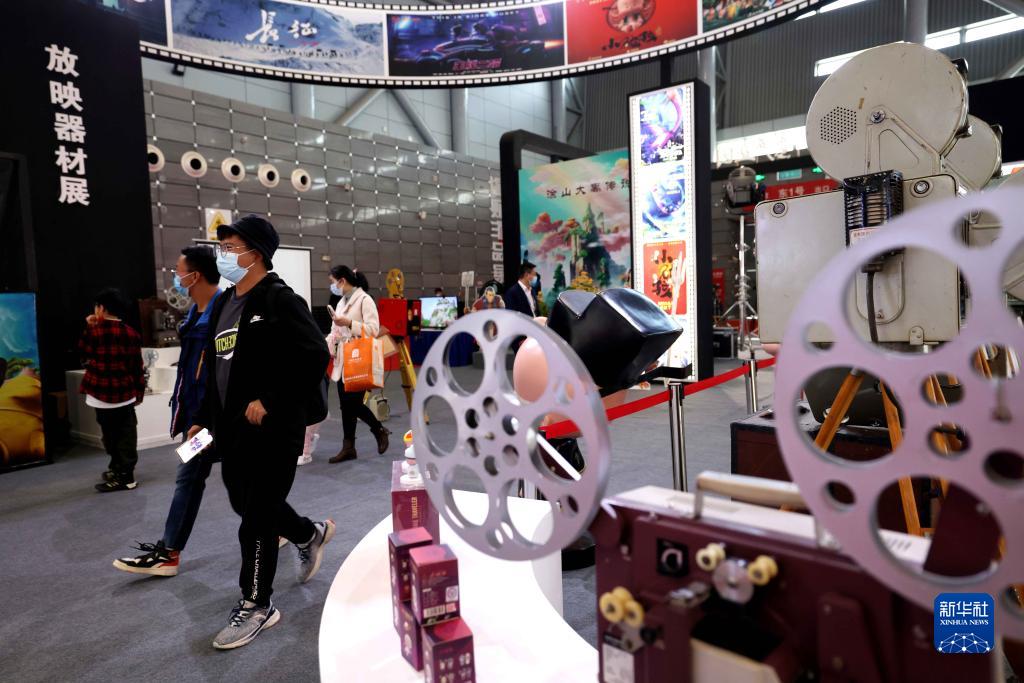 10月23日,在第十五届合肥国际文化博览会现场,市民在参观放映器材展。