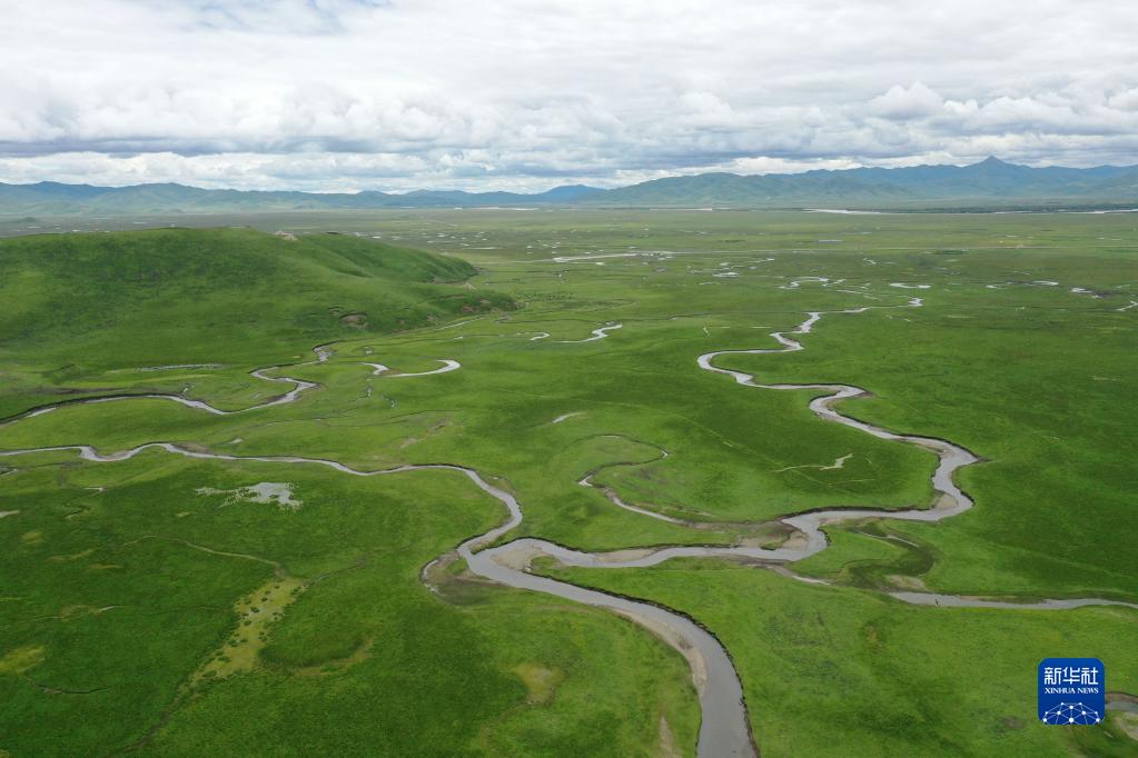 这是7月15日拍摄的甘肃省玛曲县阿万仓湿地(无人机照片)。