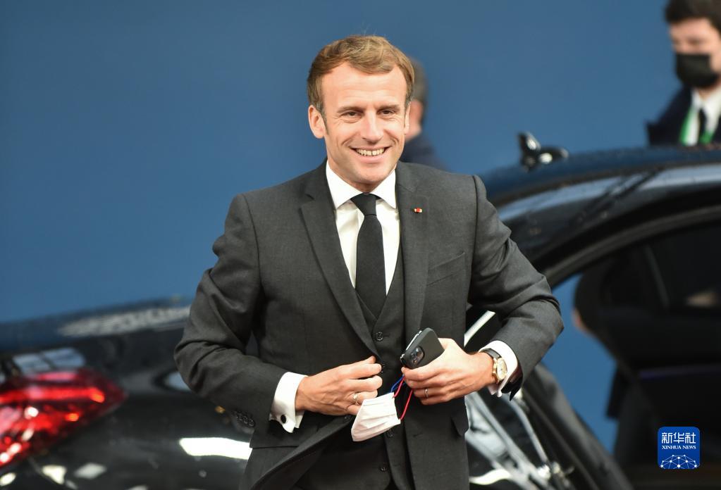 10月21日,法国总统马克龙抵达位于比利时布鲁塞尔的欧盟总部。