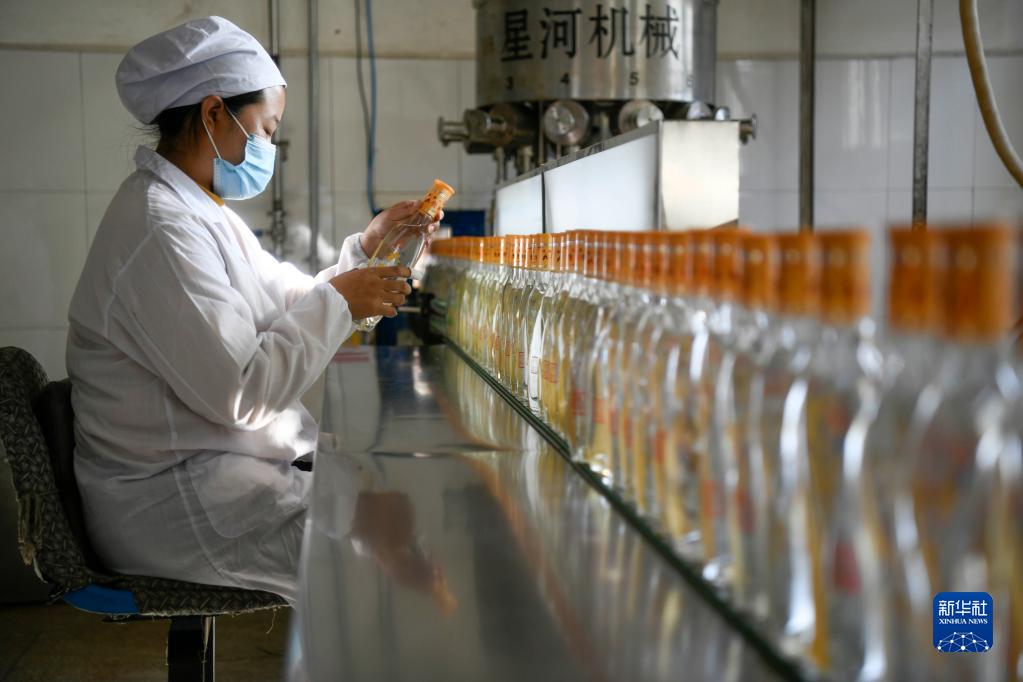 深秋时节,河北省丰宁满族自治县的白酒企业进入酿酒繁忙期,当地企业员工按照非遗酿造技艺生产白酒,浓郁的酒香在厂区飘荡。