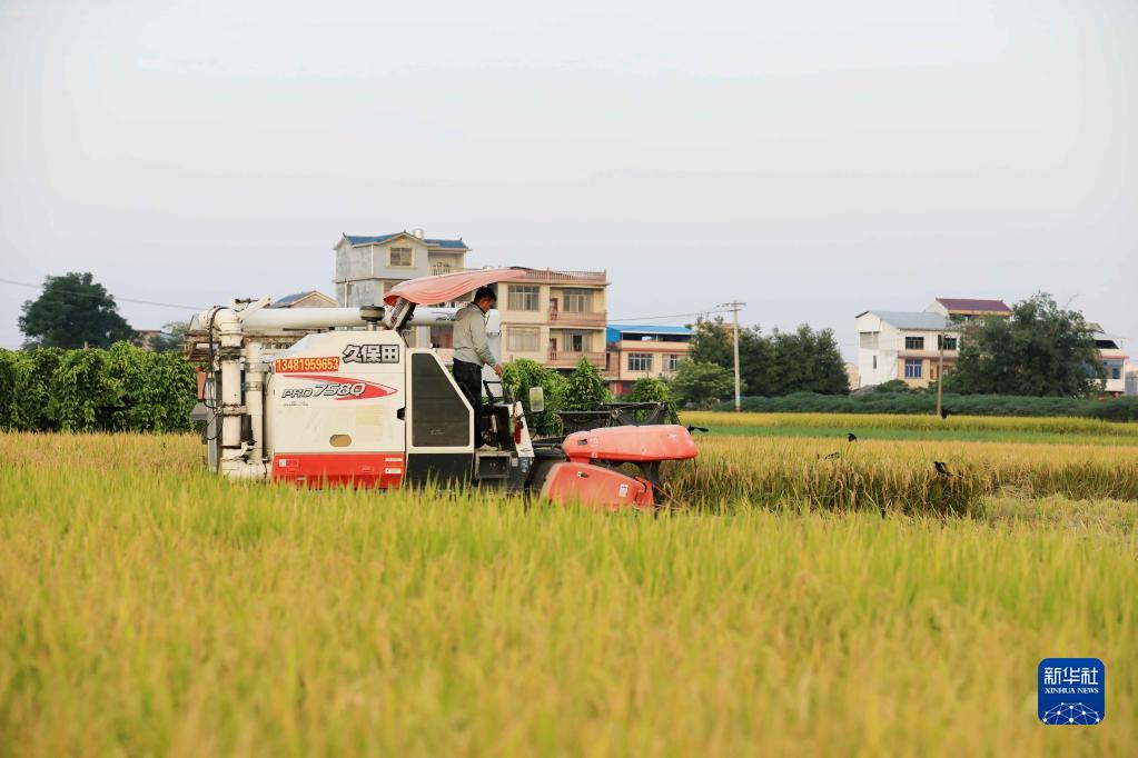 10月23日,在广西柳州市融安县长安镇大巷村,农民驾驶收割机收割晚稻。