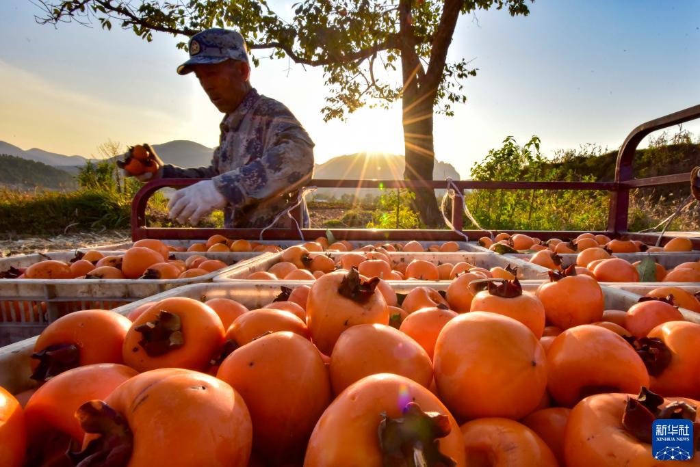 10月23日,山东省青州市王坟镇郭庄村农民整理采摘的柿子。