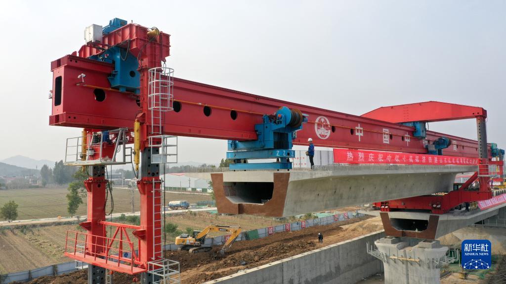 当日,郑(州)济(南)高铁山东段站前I标首榀640吨箱梁架设圆满成功,这标志着郑济高铁山东段全面转入箱梁架设施工阶段。郑济铁路是国家“八纵八横”高铁网的重要组成部分,项目通车后,济南到郑州的通行时间将缩短至1.5小时。
