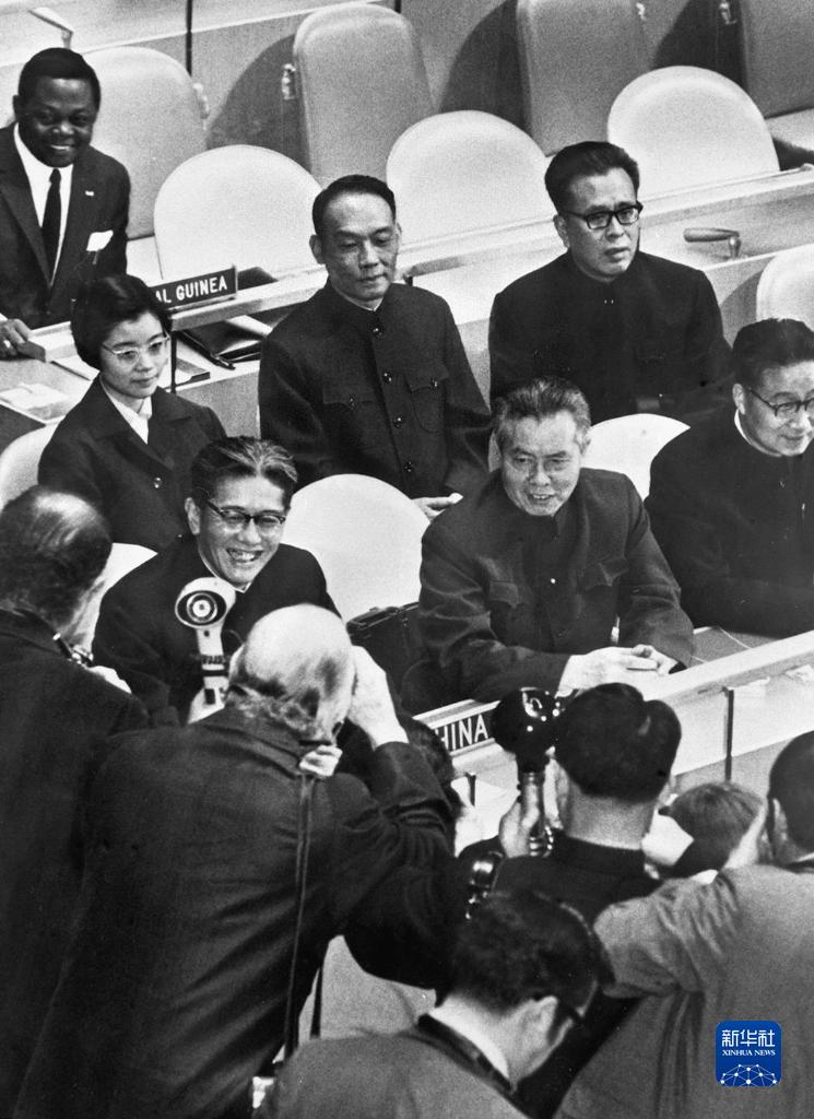 1971年11月15日,中国代表团首次出席第26届联合国大会全体会议。会后,中国代表团受到各国记者的“包围”。