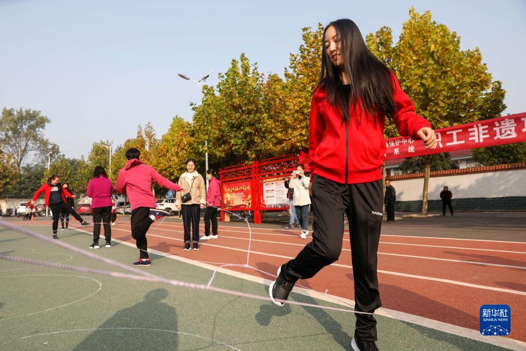 10月24日,居民在河南省宝丰县杨庄镇马山根村文化广场参加跳皮筋比赛。