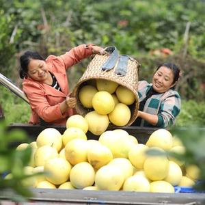 近日,贵州省赤水市官渡镇的红心蜜柚陆续成熟,当地村民抢抓农时采摘、搬运、分拣蜜柚,供应市场。