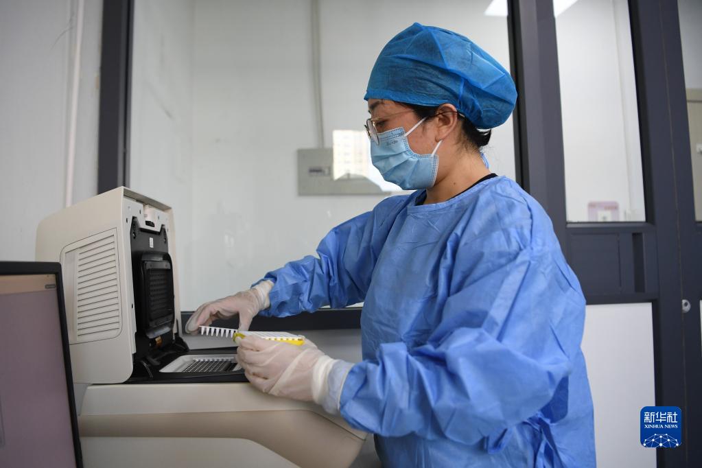 兰州大学第二医院检验医学中心副主任检验师赵有利在核酸检测实验室工作(10月21日摄)。