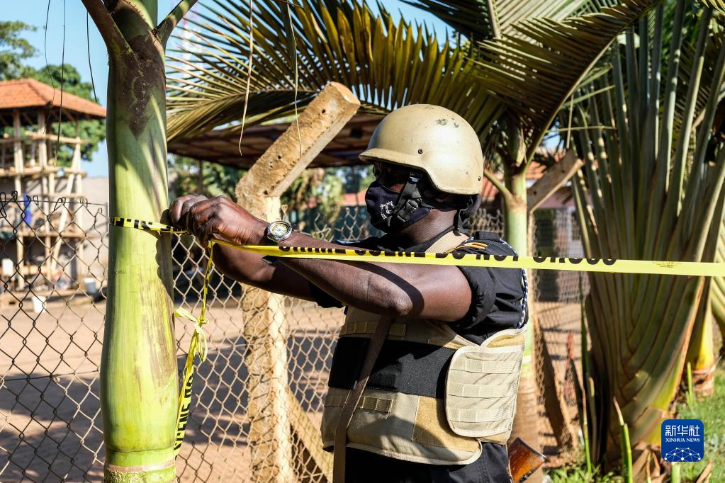 10月24日,警方在乌干达首都坎帕拉郊区爆炸事件现场拉起警戒线。