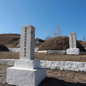 这是10月23日在朝鲜咸镜南道西北部拍摄的长津邑中国人民志愿军烈士合葬墓地。山坡下的湖即为朝鲜北部最大的湖泊长津湖。新华社记者 江亚平 摄