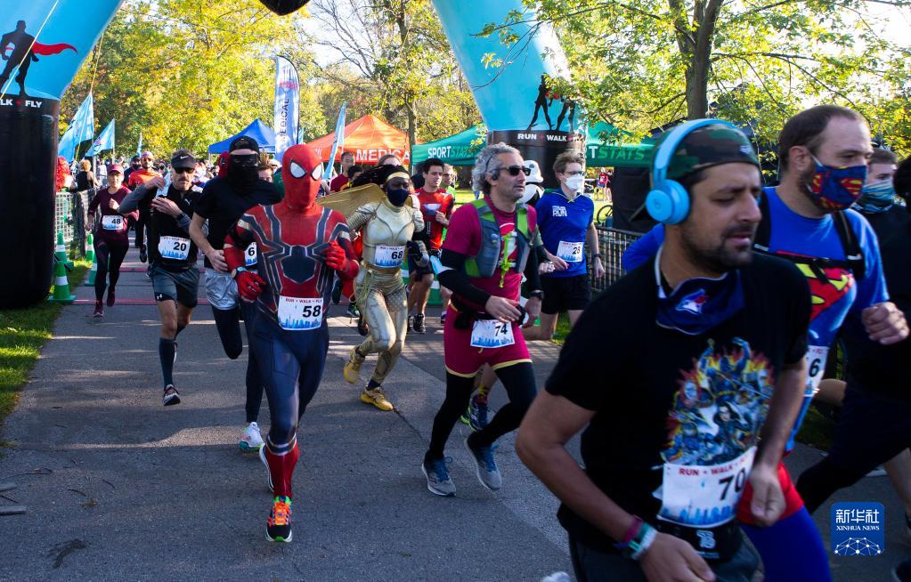 当日,加拿大多伦多举行2021年“变装”5公里长跑,吸引了数百名身着各式动漫服装的参赛者。
