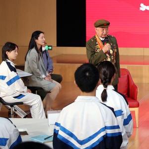 10月25日,老兵代表在上海中学的课堂上讲述抗美援朝的亲身经历。
