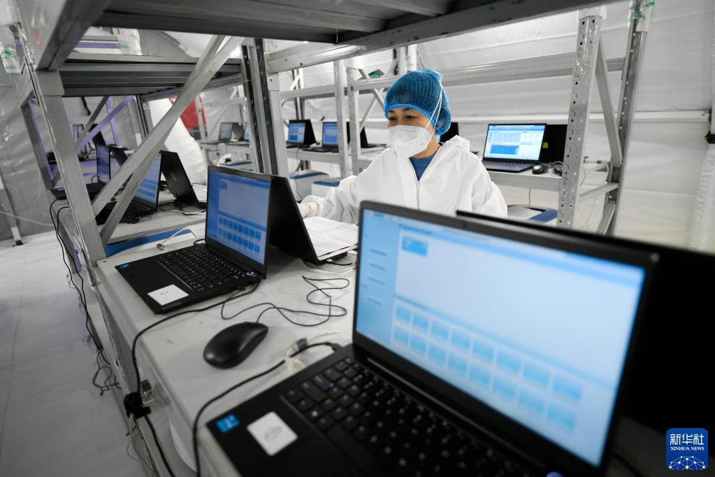 10月26日,工作人员在“猎鹰号”硬气膜实验室样本处理区监测设备运行情况。