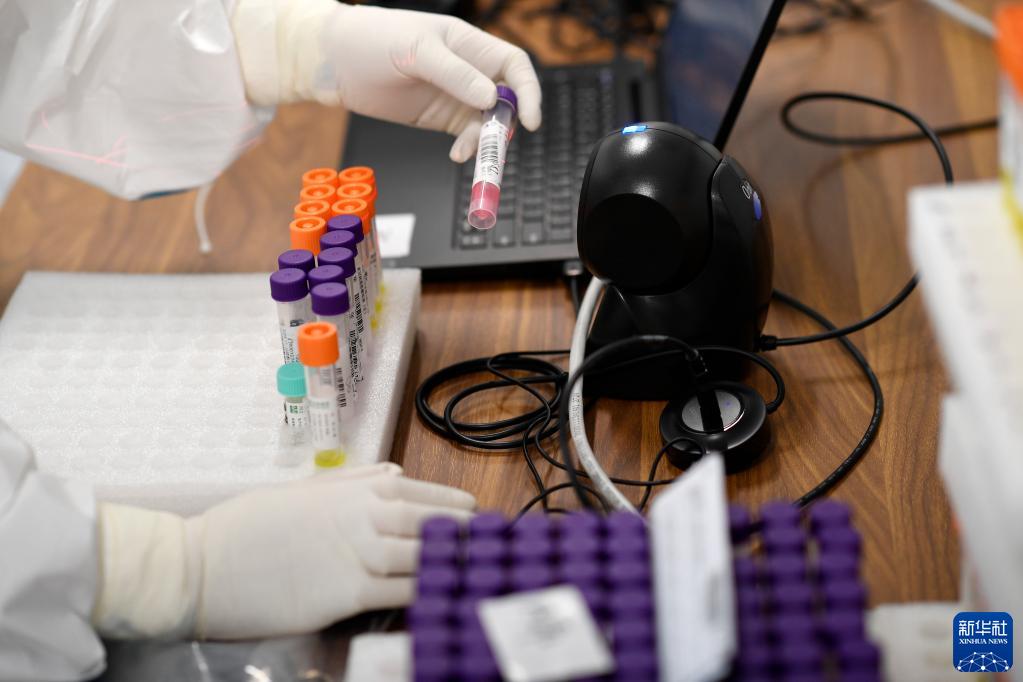 10月26日,工作人员在“猎鹰号”硬气膜实验室样本处理区登记样本试管信息。