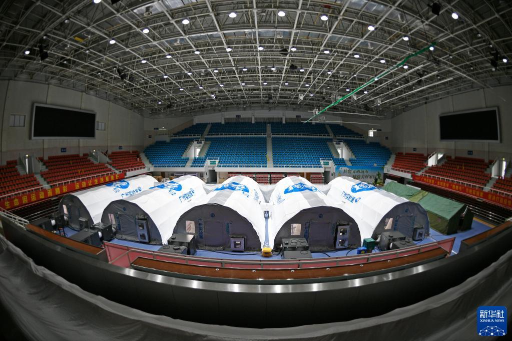 这是10月26日拍摄的位于宁夏银川体育馆的一组五舱合一“猎鹰号”硬气膜实验室。