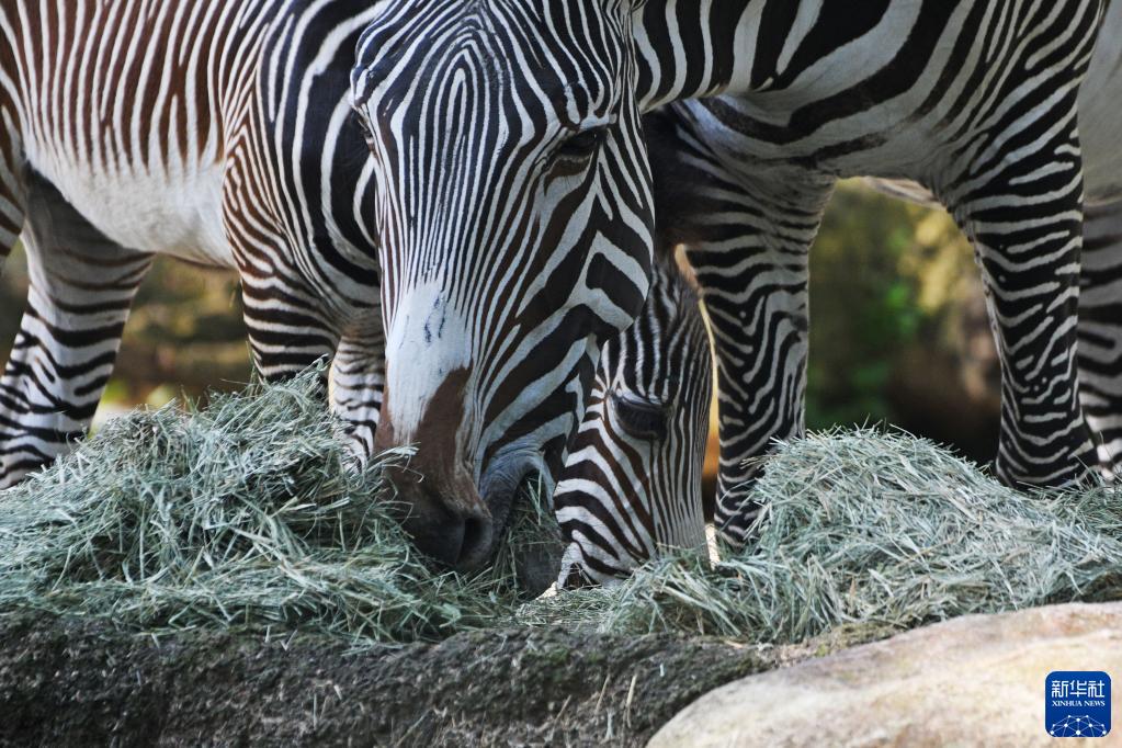 这匹9月30日出生的细纹斑马当天在新加坡动物园首次亮相。
