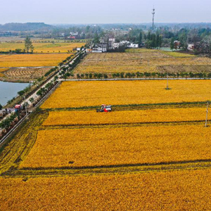 眼下正是河南省信阳市晚稻收割时节,当地农民利用晴好天气加紧收割水稻,确保颗粒归仓。