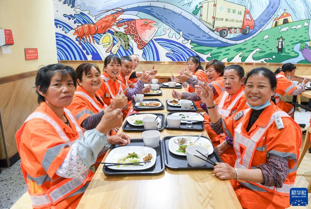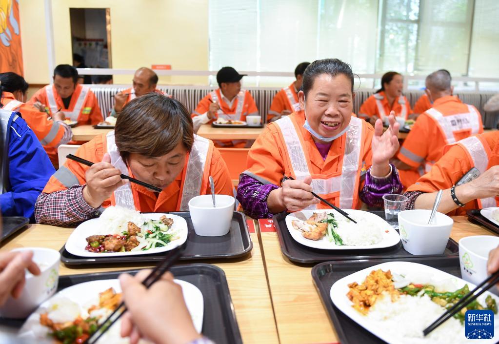 10月26日,在深圳福田区家乐缘餐厅海松店,环卫工人集体享用“爱心餐”。