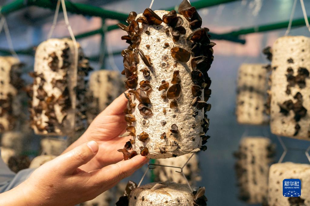 10月21日,在北京展览馆举行的国家“十三五”科技创新成就展上,工作人员展示陕西柞水木耳智能大棚中的木耳。