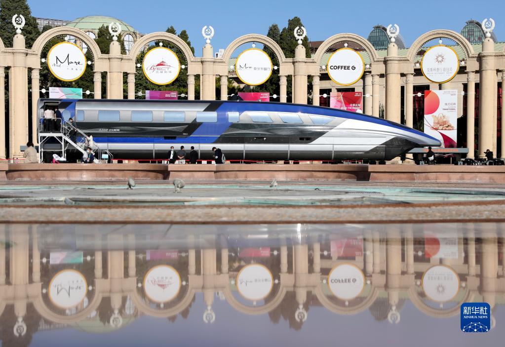 10月21日,观众在北京展览馆参观国家“十三五”科技创新成就展展出的时速600公里的高速磁浮列车。