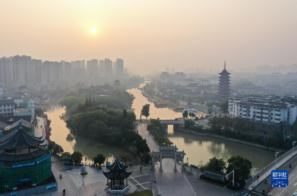 10月27日拍摄的淮安里运河文化长廊景色(无人机照片)。