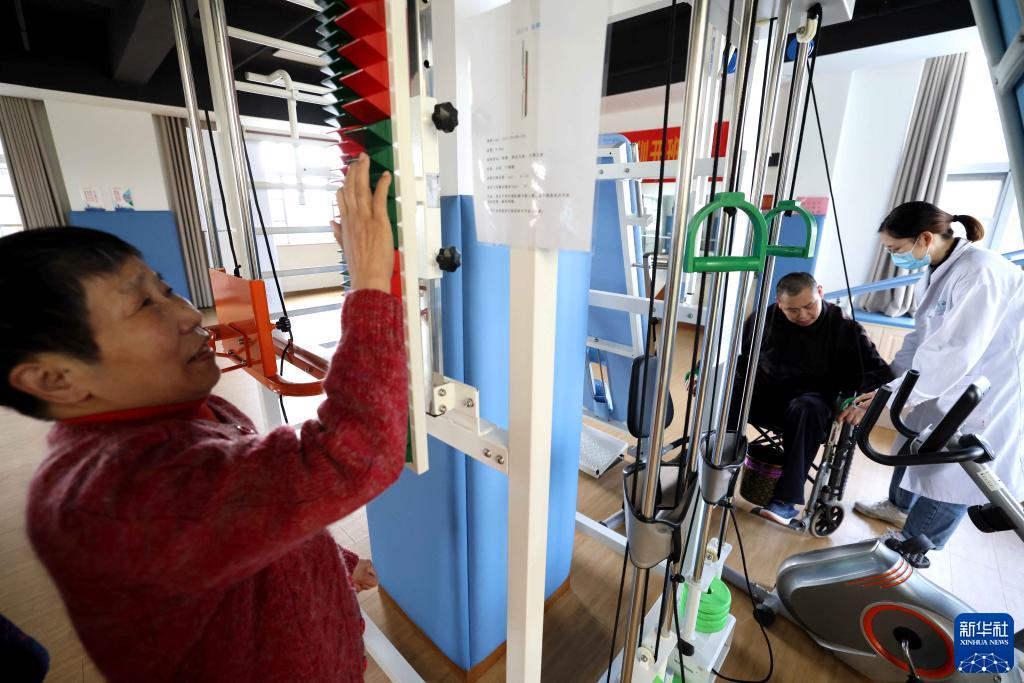 10月27日,在安徽省合肥市瑶海区东七社区居家养老服务中心,医生在指导老人进行康复训练。新华社发(解琛 摄)