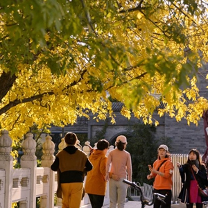 时值深秋,北京市街头树木呈现迷人的色彩,秋意正浓。