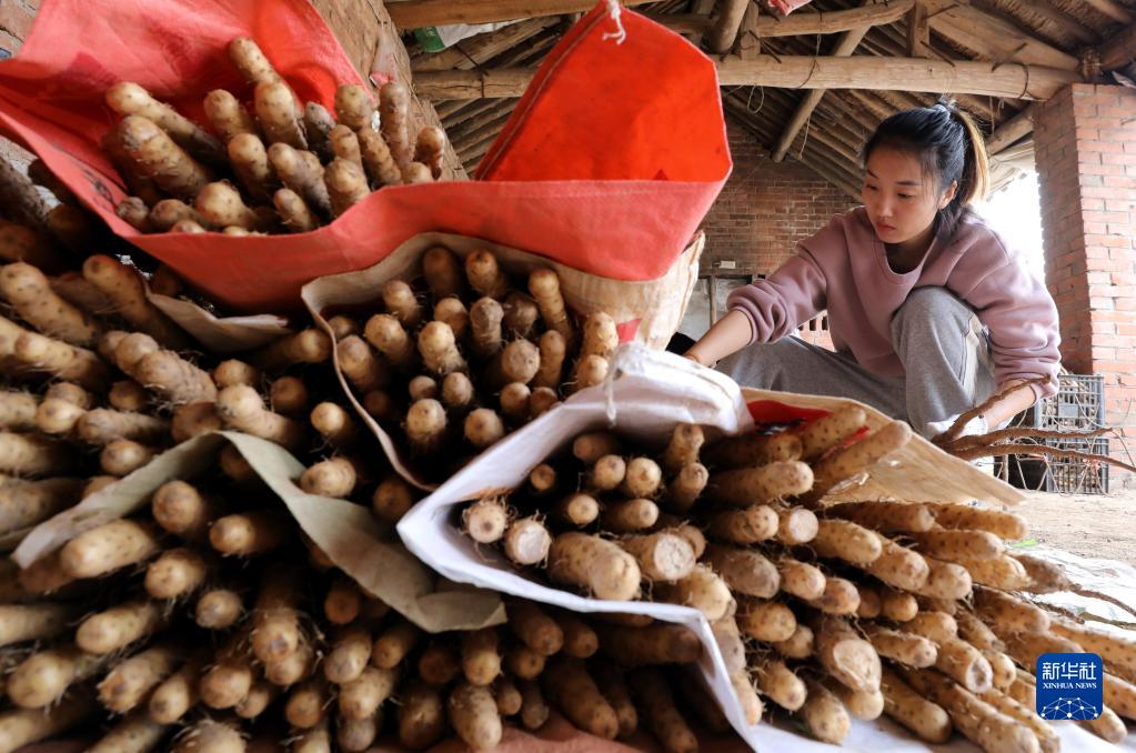 10月27日,在河南省焦作市温县一家铁棍山药专业种植合作社,农户在整理铁棍山药准备打包外销。