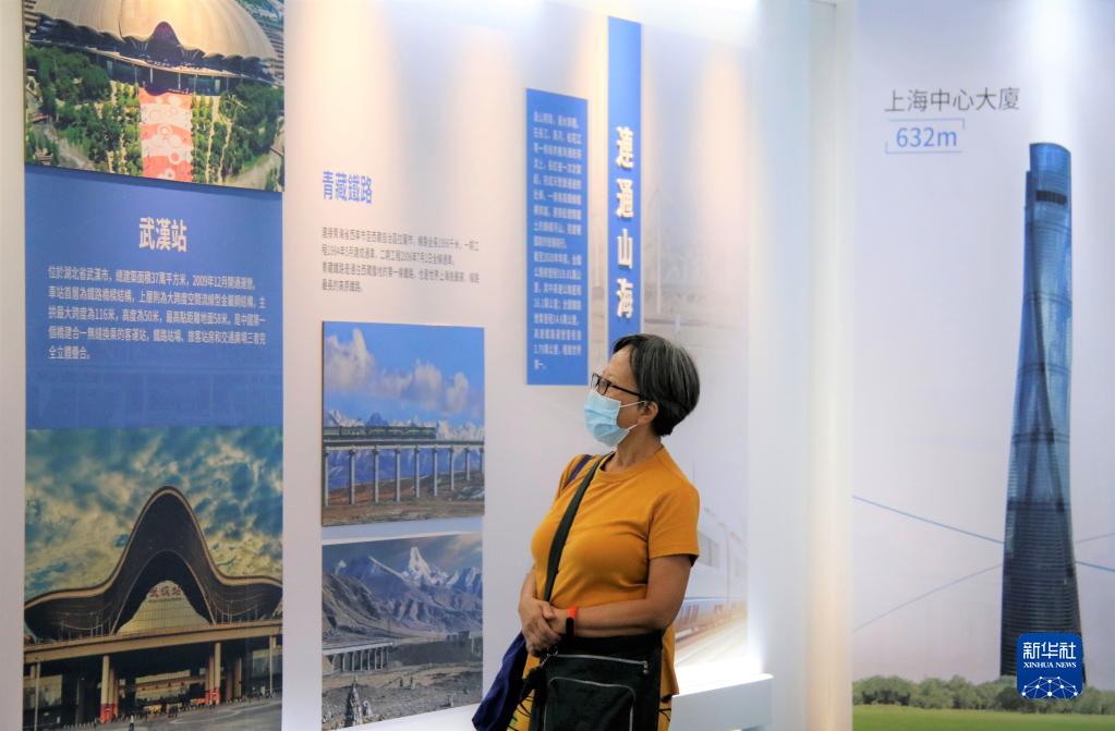 在香港会议展览中心,市民观看大国建造主题展(10月26日摄)。新华社记者 张佳怡 摄