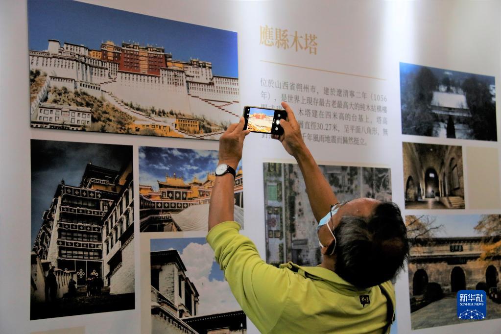 在香港会议展览中心,市民在大国建造主题展上拍照(10月26日摄)。新华社记者 张佳怡 摄