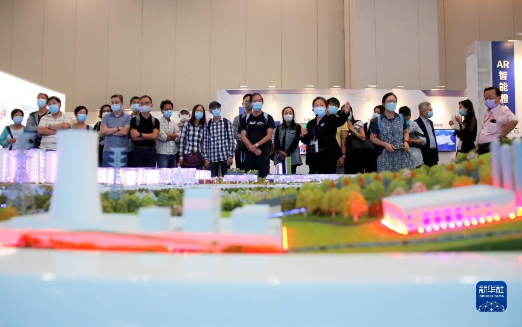 在香港会议展览中心,工作人员为市民讲解(10月26日摄)。新华社记者 张佳怡 摄