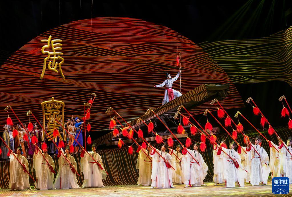 10月27日晚,在乌鲁木齐文化中心大剧院,演员在舞剧《张骞》中表演。新华社记者 王菲 摄