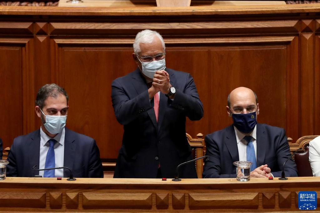 10月27日,葡萄牙总理科斯塔(中)在首都里斯本的议会现场发表讲话后致意。