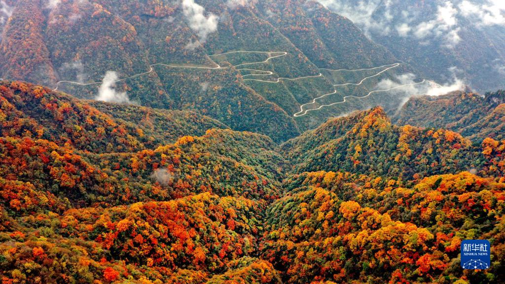 近日,位于川陕交界的陕西省汉中市南郑区龙头山旅游景区云雾缭绕,层林尽染,如火似霞的红叶点缀着连绵起伏的山峦,构成了一幅迷人的山水画卷。