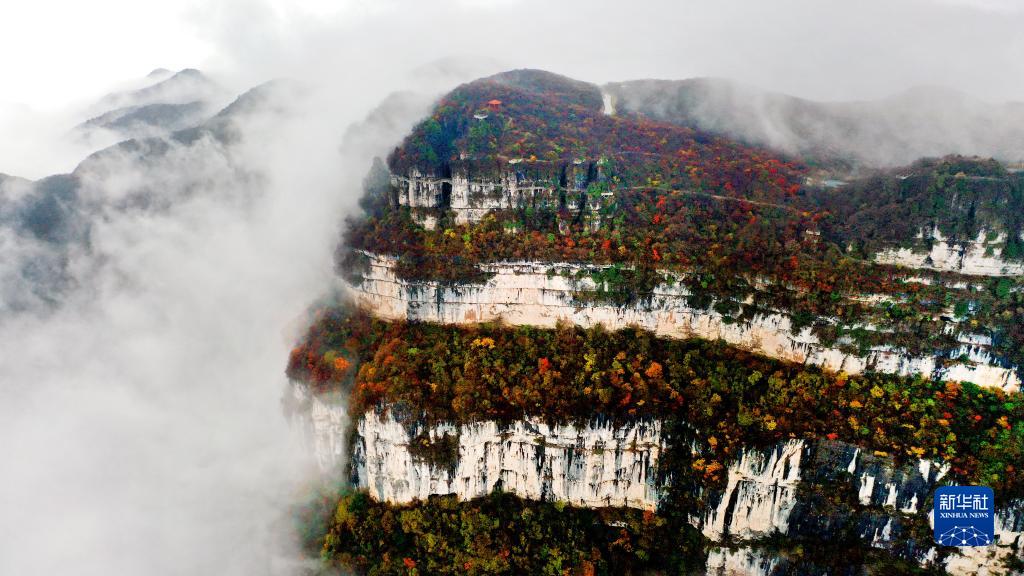近日,位于川陕交界的陕西省汉中市南郑区龙头山旅游景区云雾缭绕,层林尽染,如火似霞的红叶点缀着连绵起伏的山峦,构成了一幅迷人的山水画卷。