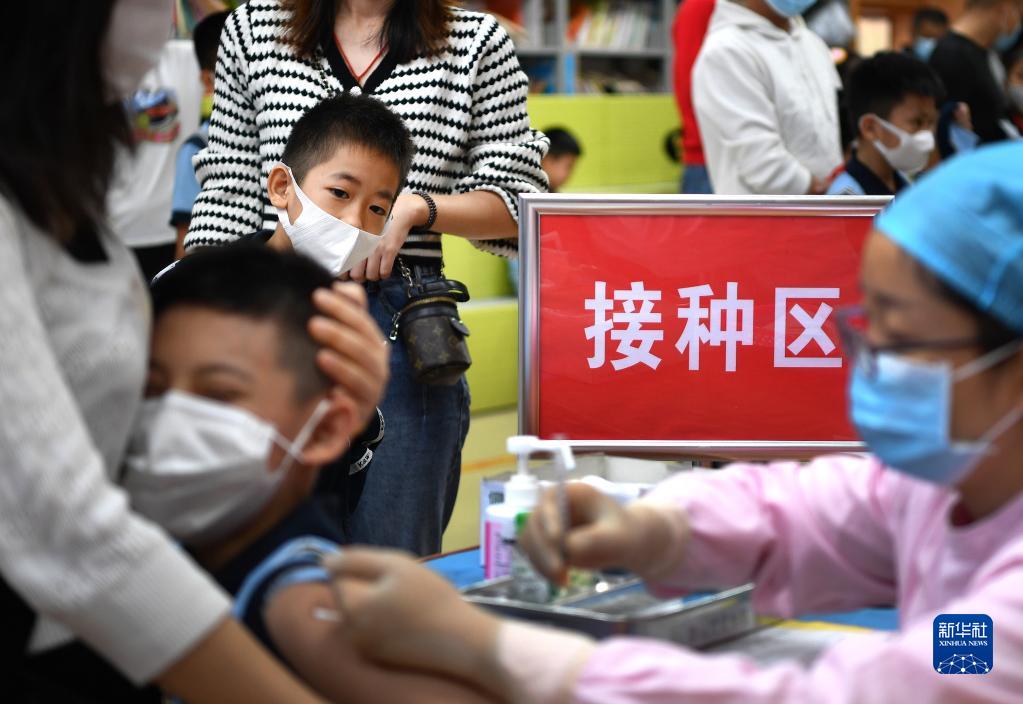 近日,海口市全面启动3到11岁人群新冠疫苗接种工作,医护人员走进校园,为小朋友们接种疫苗。