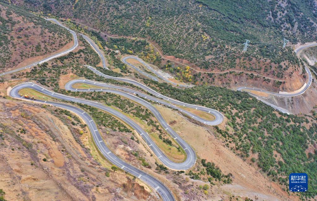 这是10月22日拍摄的四川省甘孜藏族自治州得荣县境内的一段公路(无人机照片)。