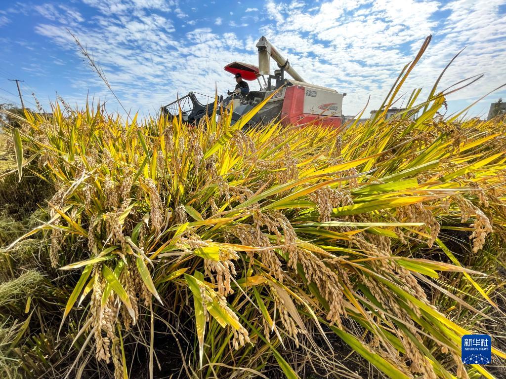 近日,江苏省南通市通州区秋收秋种工作如火如荼,当地农户抓紧天气晴好的有利时机收割水稻。据介绍,今年南通市通州区水稻种植面积40.38万亩,截至目前收获面积达9.69万亩。