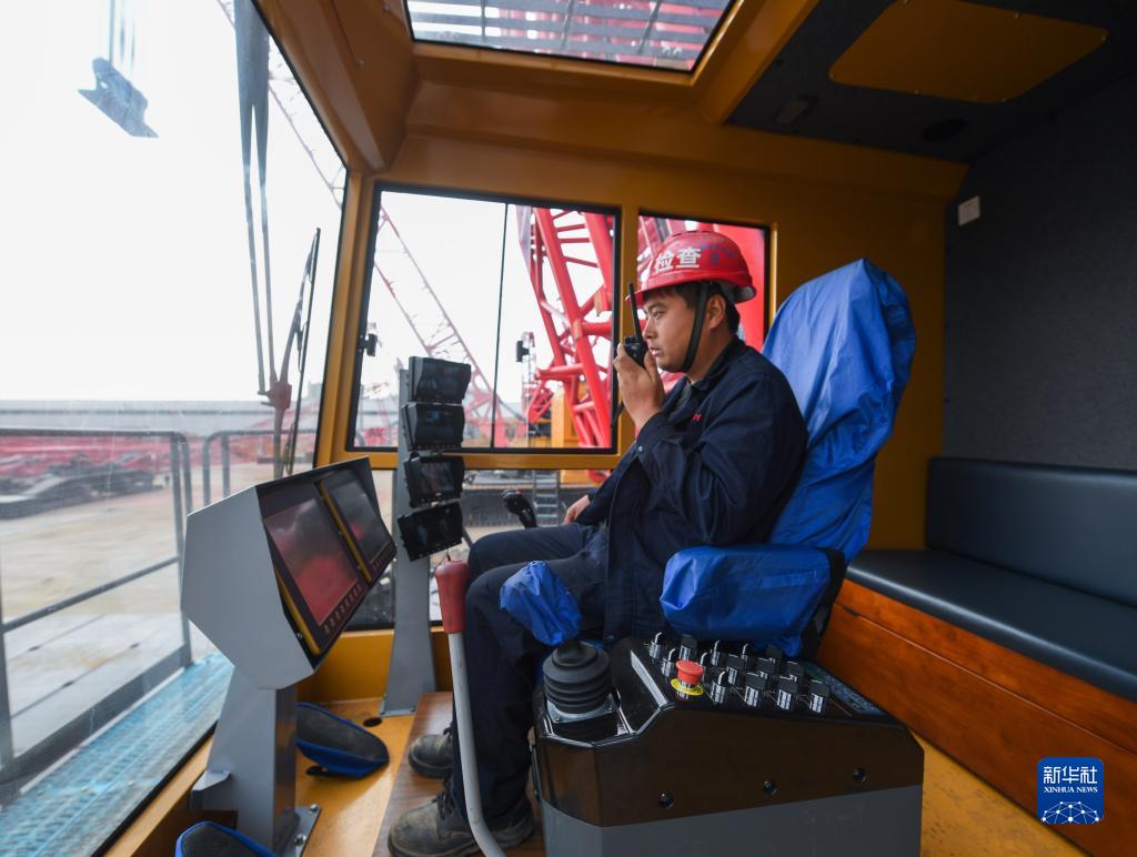 10月28日,操作人员坐在三一SCC98000TM履带起重机驾驶舱内。
