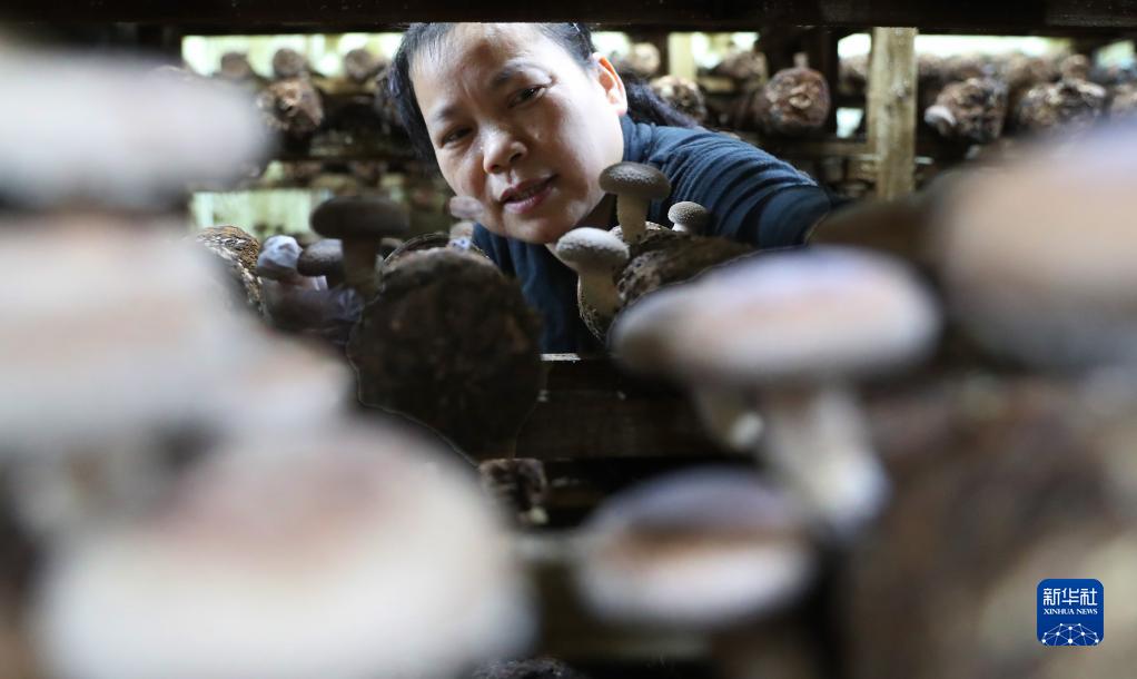 10月28日,三樟镇义门村村民在采摘香菇。新华社发(曹正平摄)