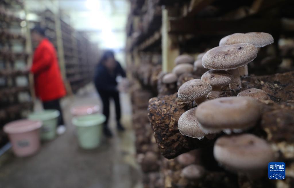 10月28日,三樟镇义门村村民在采摘香菇。新华社发(曹正平摄)