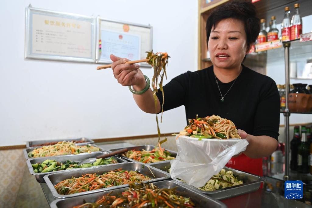10月28日,在孙记手擀面面馆,孙桂林在店里准备小菜。