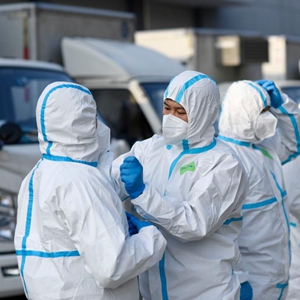 10月27日,工作人员在宁夏银川市兴庆区一家隔离酒店收集、转运涉疫垃圾。新华社记者 王鹏 摄