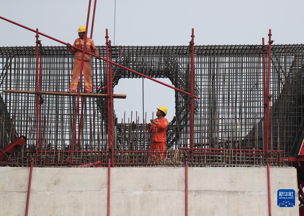 10月28日,工人在广西滨海公路龙门大桥项目建设现场施工。