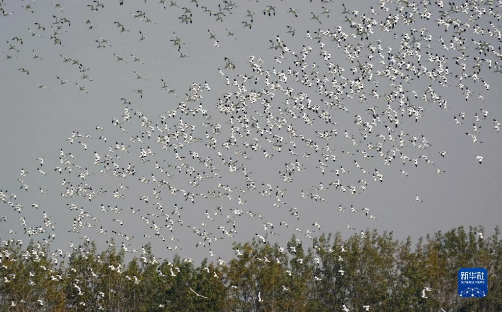 近日,大批候鸟飞抵河北省唐山市曹妃甸湿地休憩、觅食。近年来,曹妃甸区持续加大湿地保护力度,使生态环境得到明显改善,候鸟种类、数量明显增多。
