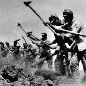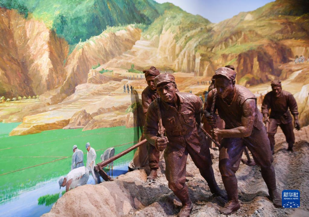 南泥湾大生产纪念馆内的雕塑作品(7月22日摄)。
