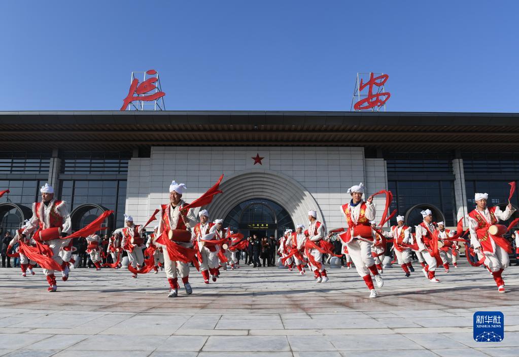 陕西延安南泥湾机场正式通航,演员在南泥湾机场进行通航庆祝表演(2018年11月8日摄)。
