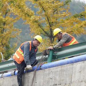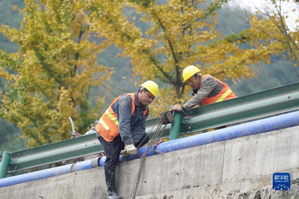 10月29日,在重庆市北碚区天府镇中心村,重庆碚江水务的施工人员在安装供水管道。