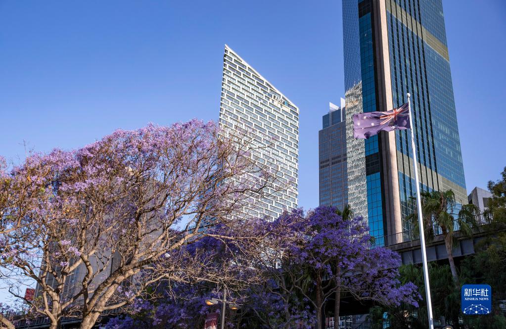 这是10月29日在澳大利亚悉尼拍摄的盛开的蓝花楹。